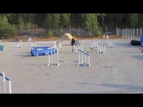 Ajattelin kuitenkin keskittyä hyvään A:n suoritukseen ja vaikka keskeyttää radan A.n jälkeen, kunhan vain A-este tulisi suoritettua puhtaasti. Domi teki hienon A:n alastulon ja kääntyikin niin hyvin heti A.n jälkeen että ohjaaja oli kuin olikin pahasti myöhässä. Olin suunnittellut valssaavani tai plan b:nä tekeväni takaaleikkauksen. Nooh, teinkö kumpaakaan. En. Huomasin tekeväni persjätön pahasti myöhässä. Muuten Domilta hienoa menoa. Kovasti puomia olisin radalle kaivannut, sillä puomitreeniä olisimme kaivannet.